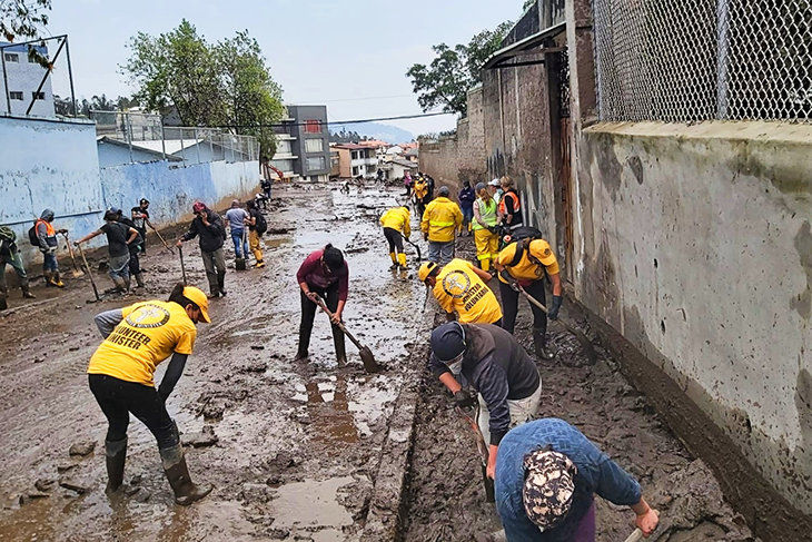 來自厄瓜多基多的山達基 (Scientology) 志願牧師,對發生在2月1日的毀滅性土石流做出回應。